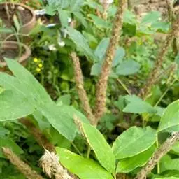 花黄绿色,组成穗状花序;花序腋生或顶生,被短柔毛,雄花序长8-20厘米,雌花序长5-16厘米;雄花:直径5-6毫米;花托长1.5毫米,深棕色,外面密被褐色短柔毛;萼片3-4,三角状披针形,长约2毫米,两面均被柔毛;花瓣4片,椭圆形,长约2毫米,被柔毛;雄蕊6-8(9);雌花:直径5-6毫米;花托长约2毫米;萼片和花瓣均为4-5形状与雄花的相似,长约3毫米,两面密被柔毛;不育雄蕊4-8;子房无毛,花柱短,下弯,柱头膨大,2裂;胚珠多数。