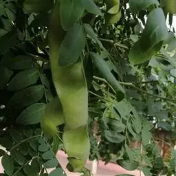 荚果上密被黄绿色绒毛。带形,扁平,长20-35厘米,宽2-4厘米,不规则旋扭或弯曲作镰刀状,先端具长5-15毫米的喙,果颈长1.5-3.5(5)厘米,果瓣革质,棕色或棕黑色,常具泡状隆起,无毛,有光泽;种子多数,椭圆形,长9-10毫米,宽5-7毫米,深棕色,光滑。花期4-6月;果期6-11月。