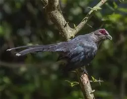 绿嘴地鹃:体形似小鸦鹃,但羽色大致绿灰;嘴绿色,头侧眼的周围有一裸区;后爪弯曲。虹膜赤红色,…