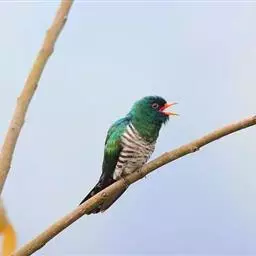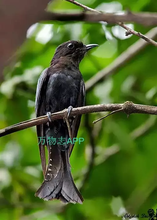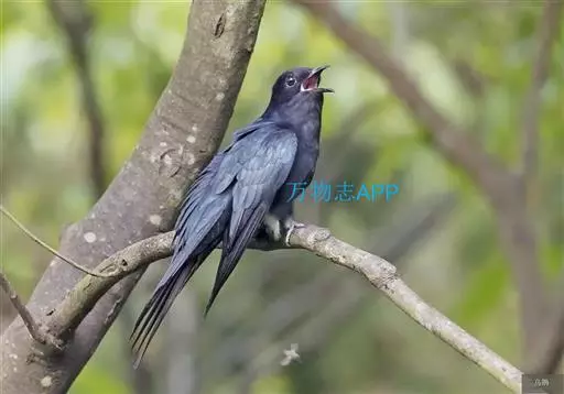 乌鹃(学名:Surniculus lugubris):是杜鹃科、乌鹃属的小型鸟类,体长23-28厘米,通体黑色,尾呈浅叉状,尾下覆羽和外侧尾羽具白色横斑,在黑色的尾部极为醒目。下体黑色,微带蓝色或辉绿色。虹膜褐色或绯红色,嘴黑色,脚灰蓝色。