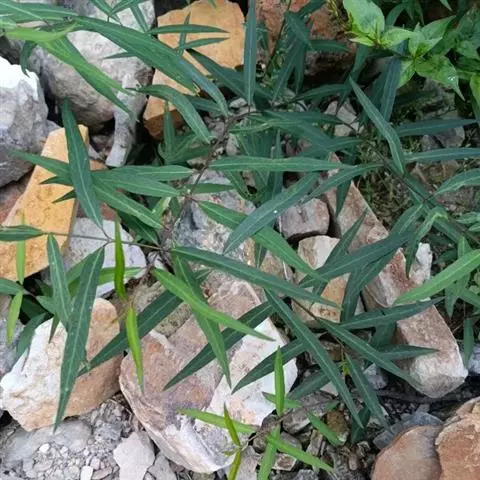 直立半灌木,高约1米,无毛,分枝或不分枝;须根纤细、节上丛生。叶对生,纸质,狭披针形,长6-13厘米,宽3-5毫米,两端渐尖;中脉在叶背显著,侧脉约6对;叶柄长约5毫米。