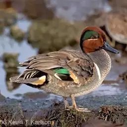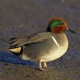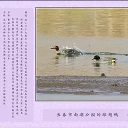 绿翅鸭是小型鸭类,体长37厘米,体重约0.5千克。嘴脚均为黑色。雄鸟头至颈部深栗色,…