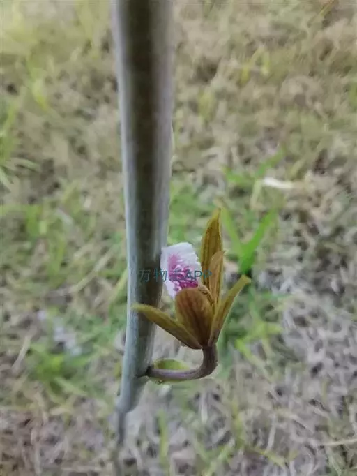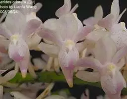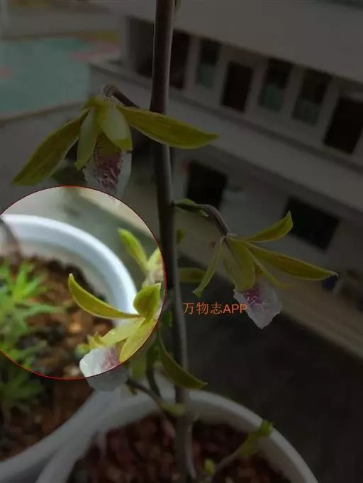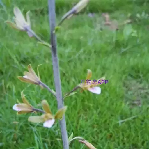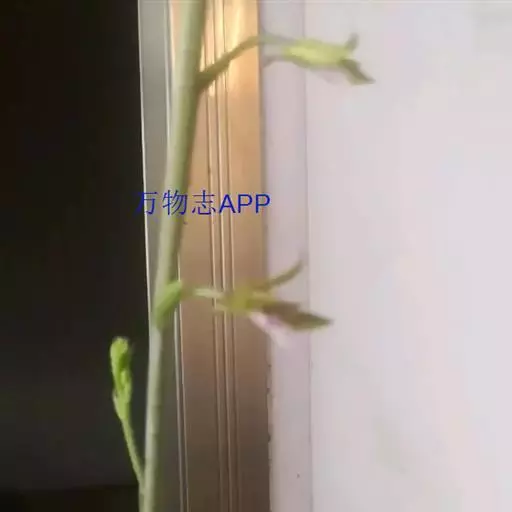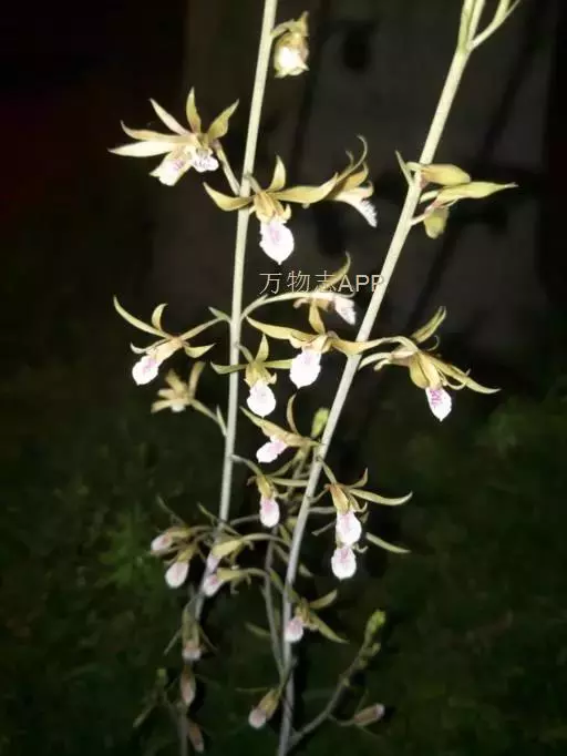 花葶从假鳞茎一侧节上发出,高43-65厘米或更高,中部以下有数枚鞘;鞘长1.5-3.5厘米;总状花序直立,长20-40厘米,常有1-2个侧分枝,疏生多数花;花苞片草质,线状披针形,长4-8毫米,宽约2毫米,先端长渐尖;花梗和子房长1.5-1.9厘米;花橄榄绿色,唇瓣白色而具淡紫红色褶片;中萼片倒披针状线形,长1.1-1.3厘米,宽1.5-2毫米,先端渐尖;侧萼片与中萼片相似,常略斜歪而稍大。