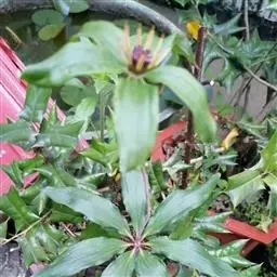 2、七叶一枝花,多年生草本,高30-2500px。茎直立。叶5-8片轮生于茎顶,叶片披针形、倒卵状披针形或倒披针形,长7-425px.宽2.5-125px。花梗从茎顶抽出,通常比叶长,顶生一花,萼片4-6,叶状,绿色,长3-175px;花被片细线形,黄色或黄绿色,宽1-1.5mm。长为萼片的1/3至近等长;雄蕊8-10,花药长1.2-50px。蒴果球形。花期5-7月,果期8-10月。生于山坡林下荫处或沟谷边的草丛阴湿处。