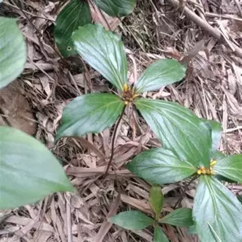 1、云南重楼,多年生草本。叶6-10片轮生,叶柄长5-20mm,叶片厚纸质,披针形、卵状长圆形至倒卵形,长5-275px,宽2-112.5px。花梗从茎顶抽出,顶生一花;花两性,萼片披针形或长卵形,绿色,长3.5-150px;花被片线形而略显披针形,黄色,长为萼片的1/2左右至近等长,中部以上宽2-6mm;雄蕊8-10,花药长l-37.5px;花丝比花药短,药隔突出部分1-2mm。花期6-7月,果期9-10月。生于山地林下或路旁草从的阴湿处。