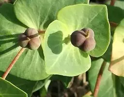 蒴果三棱状,直径1.5厘米,长1.0-1.2厘米,平滑无毛,灰褐色。种子圆柱状,长3-3.5毫米,直径2.5-3毫米,褐色,腹面具沟纹;无种阜。花果期5-7月。