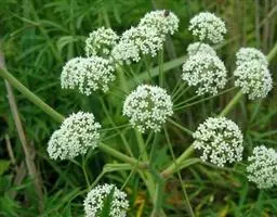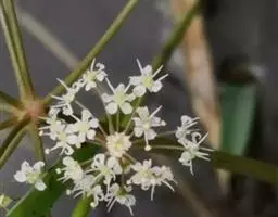 伞形花序三出,中间的伞辐长于两侧的伞辐;小总苞片3—7,倒披针形或宽线形,长0.7—3.5厘米,宽3—6毫米,全缘或疏生1—3齿;小伞形花序多花;雄花15—20;花柄长2毫米,萼齿卵状披针形,长1.2—1.8毫米,宽0.6—1毫米,顶部渐尖,中间有1脉;花瓣淡红色至紫红色,长2—2.5毫米,宽约1毫米,顶端内凹,基部渐窄;花丝长3—4毫米,花药长0.7—1毫米;性花3—5,近无柄,萼齿、花瓣与雄花同色、同形;花柱长于萼齿2倍,向外反曲。