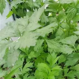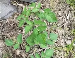 基生叶多数,柄长13—55厘米,基部有宽膜质鞘;叶片通常圆心形或肾状圆形,长3.5—10厘米,宽6.5—12厘米,掌状3裂,中间裂片倒卵形,基部楔形,侧面裂片宽倒卵形,通常2裂至中部或中部以下,所有裂片表面深绿色,背面淡绿色,上部2—3浅裂,边缘有锯齿,齿端尖,呈刺毛状;总苞片2,叶状,无柄,每片3深裂,裂片倒卵形至倒披针形,长3.5—9厘米,宽1.5—4.5厘米,边缘有锯齿。