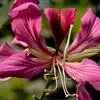 洋紫荆的花和叶长得十分有趣。它的花有五片花冠,四片对称地分裂两侧,一片翘起在上方,布满色调颇浓的彩斑,很像兰花的花舌,因此有人称它为“兰花树”。三色堇在南方被人叫做“蝴蝶花”,其实,这顶桂冠戴在豆科植物洋紫荆的头上,也是合适的。