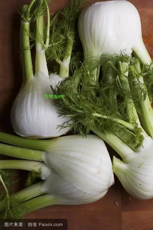 球茎茴香是伞形花科茴香属的一个变种,为一年生草本植物,原产地中海沿岸及西亚,其茎的上部叶鞘膨大而形成的长扁球形的脆嫩球茎及嫩叶供食用,根和种子也可作香料和蔬菜,整株无废弃部分,球茎茴香含茴香醚、茴香酮、茴香醛等挥发油,富有辛香气味,并含胡萝卜素、维生素C和各种人类必需的氨基酸,营养价值较高。因它能促进胃肠蠕动和帮助消化,早在罗马时代,妇女们就知道食用茴香能抑制肥胖的发生。故它也是良好的减肥蔬菜。