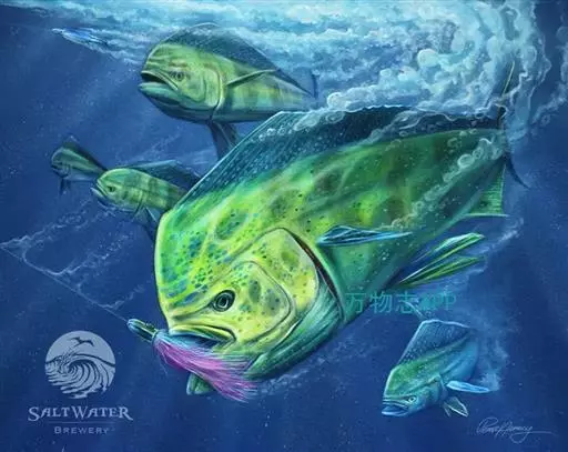 鲯鳅游动敏捷,色彩绚丽,自然成为许多游钓爱好者争相追逐的目标。多数海水鱼也有很美丽的体色,但和鲯鳅这份咄咄逼人的艳丽相比似乎显得相形见绌。尤其在繁殖季节,被捕后想要挣脱鱼线的鲯鳅不停挣扎和扭动,透过清澈的海水,浑身散发着金属质感的幻彩光芒。