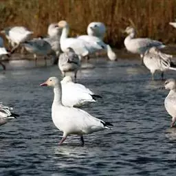 雪雁是鸭科雁属鸟类,雁属中体形大,个体重的鸟类。羽毛洁白,翼角黑色。飞行时双翼拍打用力,振翅频率高。…
