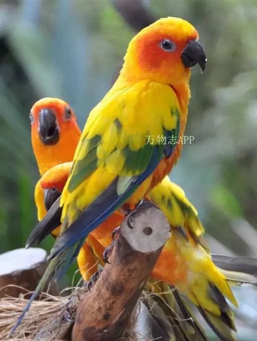 太阳锥尾鹦鹉(学名:Aratinga solstitialis)是典型的攀禽,鸟喙强劲有力,喙钩曲,上颌具有可活动关节,喙基部具有腊膜。肌肉质舌厚。脚短,强大,对趾型,两趾向前两趾向后,适合抓握和攀援生活。鹦鹉羽毛鸟体大部分为金黄色,头顶、脸颊两侧、下腹部、和背部下方都带有点桔色的色调。主要栖息于干旱,半落叶阔叶林和树木繁茂的热带稀树草原。食物为种子、浆果、水果、坚果、昆虫以及其幼虫等,通常成对活动,繁殖期聚小群,分布于巴西和圭亚那。