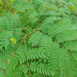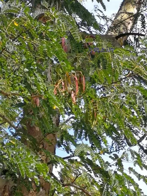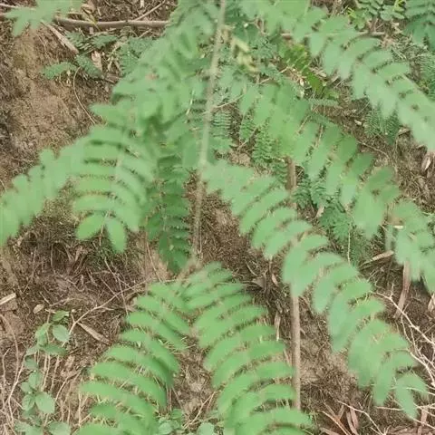 高8-12米;树皮粗糙;嫩枝密被短柔毛,老枝无毛。二回羽状复叶;总叶柄近基部及叶轴上羽片着生处均有腺体;叶轴被短柔毛或无毛;羽片2-4对,长6-15厘米;小叶4-8对,长椭圆形或略斜的长椭圆形,长2-4.5厘米,宽(0.9-)1.3-2厘米,先端圆钝或微凹,两面无毛或下面疏被微柔毛,中脉略偏于上缘。