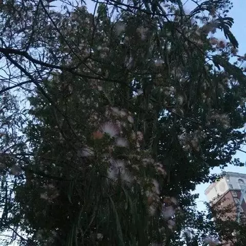 阔荚合欢(学名:Albizia lebbeck (Linn.) Benth.)是豆科合欢属植物,高8-12米;树皮粗糙;嫩枝密被短柔毛,老枝无毛。二回羽状复叶;总叶柄近基部及叶轴上羽片着生处均有腺体。头状花序花时直径3-4厘米;总花梗通常长7-9厘米。荚果带状,扁平,麦秆色,光亮,无毛,常宿存于树上经久不落;种子4-12颗,椭圆形,。花期5-9月;果期10月至翌年5月。