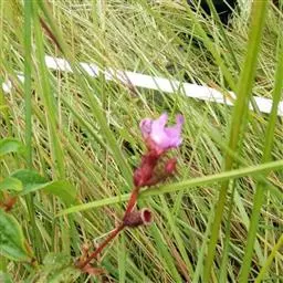 金锦香,别名:杯子草、小背笼、细花包、张天缸、昂天巷子、朝天罐子、细九尺、金香炉、装天甕、马松子、天香炉,拉丁文名:Osbeckia chinensis L.,是野牡丹科、金锦香属直立草本或亚灌木,高20-60厘米;茎四棱形,具紧贴的糙伏毛。叶片坚纸质,线形或线状披针形,极稀卵状披针形,顶端急尖,基部钝或几圆形,全缘,两面被糙伏毛,于背面隆起,细脉不明显;叶柄短或几无,被糙伏毛。头状花序,顶生,蒴果紫红色,卵状球形,4纵裂,宿存萼坛状,外面无毛或具少数刺毛突起。花期7-9月,果期9-11月。图片取自中国植物图库