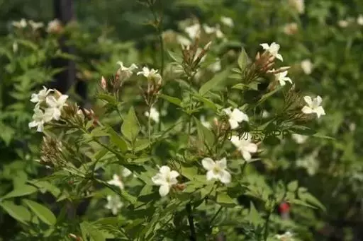 素方花(学名:Jasminum officinale L.)是木犀科素馨属植物。攀援灌木,高0.4-5米。小枝具棱或沟,无毛,稀被微柔毛。叶对生,羽状深裂或羽 状复叶,叶片和小叶片两面无毛或疏被短柔毛;顶生小叶片卵形、狭卵形或卵状披针形至狭椭圆形,果球形或椭圆形,成熟时由暗红色变为紫色。花期5-8月,果期9月。