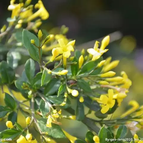 迎春花,木犀科素馨属的多年生木本植物,小枝细长直立或者呈拱形下垂;叶片呈卵形或椭圆形;花单生于叶腋处,…