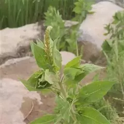 粗壮草本,高20-150厘米,被平伸的长柔毛、镰状外弯的曲柔毛和顶端头状或棒状的腺毛,毛被通常较密;根状茎不具块茎。叶狭卵形至宽卵形,中部的长4-11(-13)厘米,宽2.3-7(-11)厘米,基部常心形,有时阔楔形至阔圆形或截形,先端短渐尖,边缘具锯齿至近全缘。单总状花序顶生,或基部具分枝,长约2-20厘米;花梗长0.7-2毫米,与花序轴垂直生或在花序顶端簇生,被毛,基部有一极小的刚毛状小苞片;花芽或多或少被直或微弯稀具钩的长毛;花管长0.6-1毫米;萼片卵形至阔卵形,长2-3.7毫米,宽1.4-2毫米,白色或淡绿色,开花时反曲,先端钝圆形,花瓣白色,倒卵形至阔倒卵形,长1-2.4毫米,宽1.2-3.1毫米,先端倒心形,凹缺深至花瓣长度的1/2-2/3,花瓣裂片阔圆形;雄蕊伸展,略短于花柱或与花柱近等长;蜜腺不明显,全部藏于花管之内。果实斜倒卵形至透镜形,长3-3.9毫米,径1.8-3.3毫米,2室,具2种子,背面压扁,基部斜圆形或斜截形,边缘及子房室之间略显木栓质增厚,但不具明显的纵沟;成熟果实连果梗长4.4-7毫米。花期6-8月,果期7-9月。染色体数n=11。