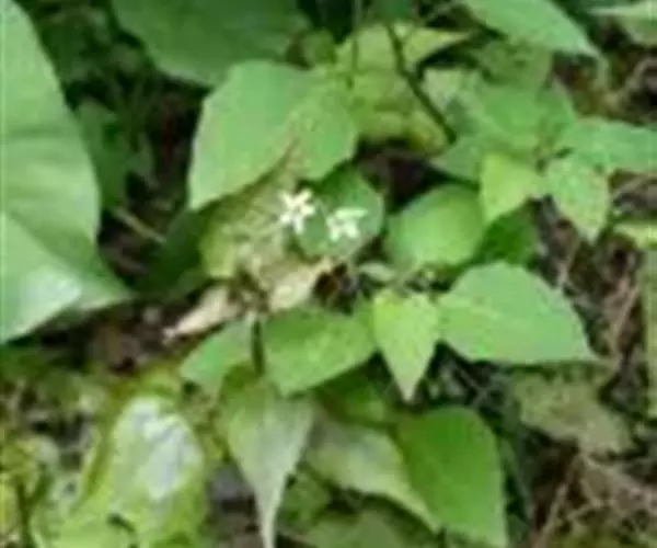露珠草(云南种子植物名录)牛泷草(中国高等植物图鉴),心叶露珠草(台湾植物志) ,别名:水珠草,拉丁文名:Circaea lutetiana L.柳叶菜科、露珠草属植株高15-80厘米;根状茎上不具块茎;茎无毛,稀疏生曲柔毛。叶狭卵形、阔卵形至矩圆状卵形,基部圆形至近心形,稀阔楔形,先端短渐尖至长渐尖,边缘具锯齿。单总状花序或基部具分枝;花梗与花序轴垂直,被腺毛,基部无小苞片。梨形至近球形,基部通常不对称地渐狭至果梗,果上具明显纵沟;成熟果实连果梗长5.3-8.5毫米。花期6-8 (-9)月,果期7-9月。