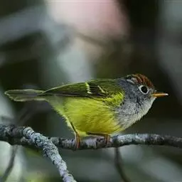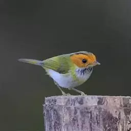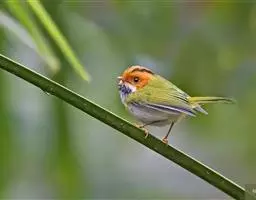 金冠地莺:形态与灰腹地莺相似,上体橄榄绿,前额至头顶渲染亮金黄色;下体几乎纯暗石板灰色,…