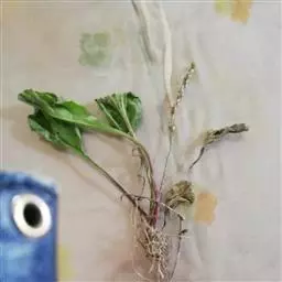 根茎较短,直径3-6mm。须根丛生,棕色至黑褐色,长可达20cm,直径小于1mm,具纵直纹;折断面棕色。叶丛生,黄绿色,叶片卵圆形或长圆形,长0.2-2.8cm,宽0.5-2.2cm;叶柄长1-4cm,上部有狭翅。花皱缩成团,萼片5,近圆形,黄绿色;花瓣棕色,有时脱落,雄蕊多数。气香,味辛。
