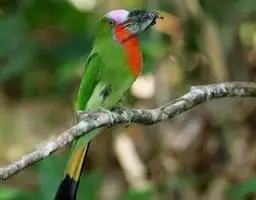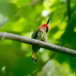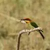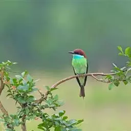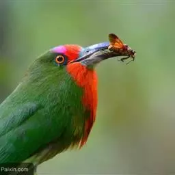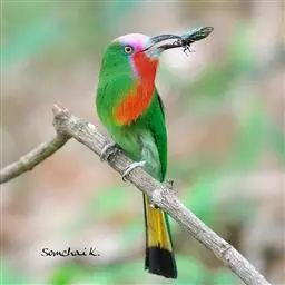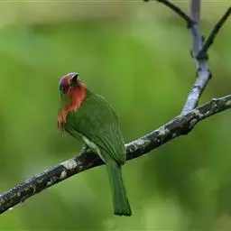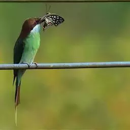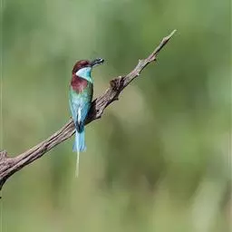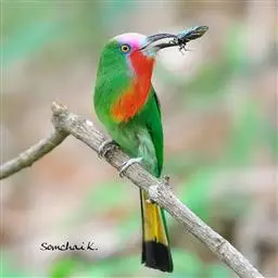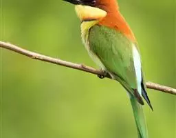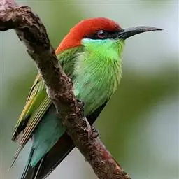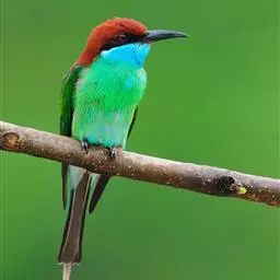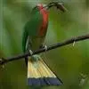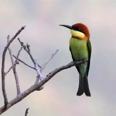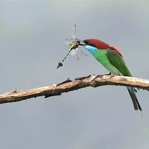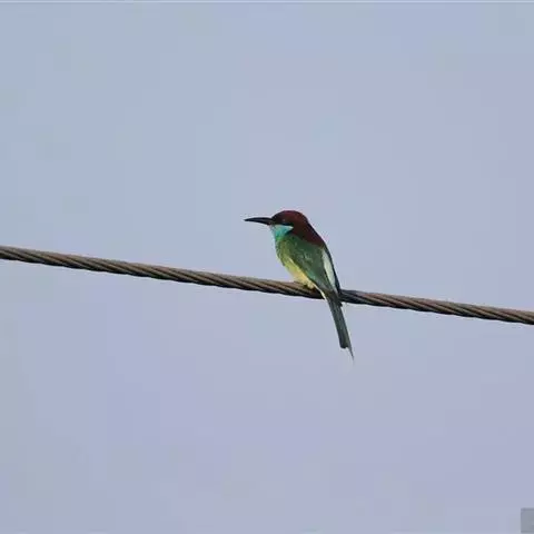 栗喉蜂虎是蜂虎科蜂虎属的鸟类。有热带鸟类羽毛艳丽的特征:喉部是栗红色的,黑色的过眼纹,…