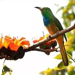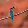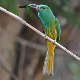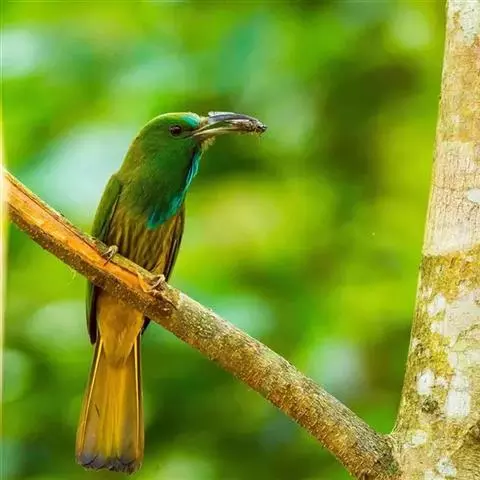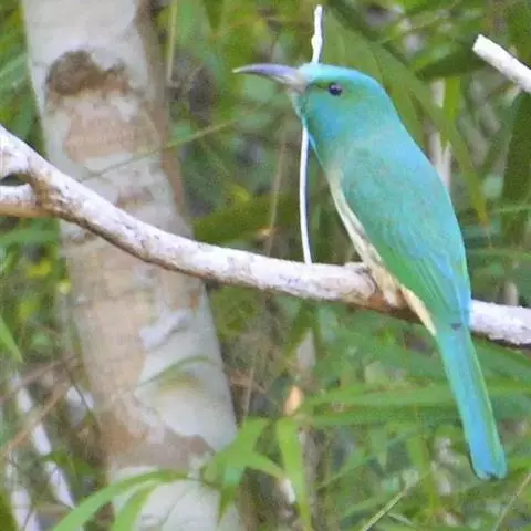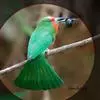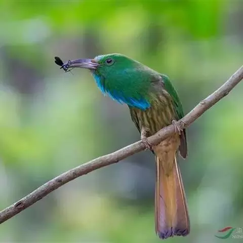 蓝须夜蜂虎是佛法僧目、蜂虎科的鸟类,体长约30厘米,是绿色林栖型蜂虎,蓝色的胸羽蓬松,嘴厚重而下弯…
