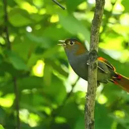 橙翅噪鹛:是噪鹛科、彩翼噪鹛属的中型鸟类,体长22-25厘米。头顶深葡萄灰色或沙褐色。上体灰橄榄褐色,…