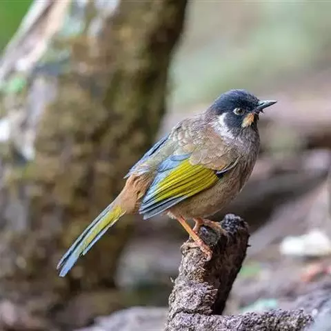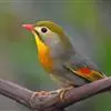 银耳相思鸟小型鸟类,体长14~18厘米。头顶黑色,耳羽银灰色,前额橙黄色;外侧飞羽橙黄色,基部朱红色,…