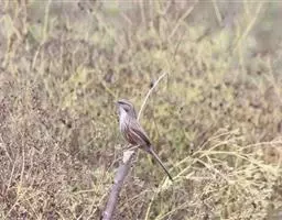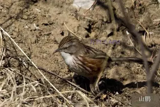 山鹛(学名:Rhopophilus pekinensis):是一种体形修长的莺类,尾尤其长,体长可达18厘米左右,上体以灰色为基色,头、颊、背、翅均为灰色中夹带纵向褐色斑纹,头部具淡色眉纹,但并不明显。自颊纹以下的喉部和整个下体均为浅色,自胸以下开始出现长而直的栗色纵纹,纵纹颜色鲜艳与腹部污白色的底色对比鲜明,这些纵纹从前到后逐渐变粗颜色变深,直到尾下覆羽全部过渡为栗色。尾羽端部污白色。虹膜褐色,嘴角质色,脚黄褐色。