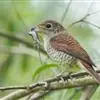 虎纹伯劳:全长165毫米左右。雄性成鸟:额基、眼先和宽阔的贯眼纹黑色;前额、头顶至后颈蓝灰色;上体余部包括肩羽及翅上覆羽栗红褐色,杂以黑色波状横斑;飞羽暗褐色,外翻具棕褐色羽缘;尾羽棕褐色,具不明显的褐色横斑,外侧尾羽端缘棕白色;下体纯白色,两胁略沾蓝灰色;覆腿羽白杂以黑斑。雌性成鸟羽色与雄鸟相似,但前额基部黑色较小,眼先及过眼黑纹沾褐,头顶灰色及背羽的栗褐色均不如雄鸟鲜艳;胁部缀以黑褐色鳞状横斑。一般栖息于树林、分布自平原至丘陵、山地,喜栖于疏林边缘以及巢址选在带荆棘的灌木及洋槐等阔叶树。性格凶猛,常停栖在固定场所,寻觅和抓捕猎物。主要食物是昆虫,特别是蝗虫、蟋蟀、甲虫、臭虫、蝴蝶和飞蛾,也吃小鸟和蜥蜴。分布于亚洲多国,该物种的模式产地在印度尼西亚爪哇。