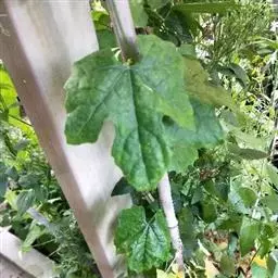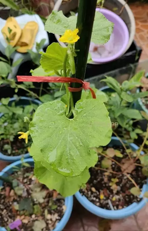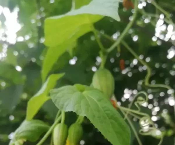 播种后约25天左右出苗。岗地出苗快,洼地山苗较慢。苗高10厘米时定苗,每穴留一株。在上架前,抓紧除草松土三次,过晚茎叶伸展,架条阻扼,不利作业。当苗高50左右时,要搭架,每四穴的架条结扎在一起,然后将各个赤瓟架用横杆联结起来,绑牢即可(搭架方式同豆角架)。当苗高66-83厘米时领蔓,以利植株攀援生长。
