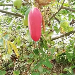 雌雄异株;雄花单生或聚生于短枝的上端呈假总状花序,有时2-3花生于总梗上,花梗细长,长1.5-3.5厘米,被柔软的长柔毛;花萼筒极短,近辐状,长约3-4毫米,上端径7-8毫米,裂片披针形,向外反折,长12-13毫米,宽2-3毫米,具3脉,两面有长柔毛;花冠黄色,裂片长圆形,长2-2.5厘米,宽0.8-1.2厘米,上部向外反折,先端稍急尖,具5条明显的脉,外面被短柔毛,内面有极短的疣状腺点;雄蕊5,着生在花萼筒檐部,其中1枚分离,其余4枚两两稍靠合,花丝极短,有短柔毛,长2-2.5毫米,花药卵形,长约2毫米;退化子房半球形。雌花单生,花梗细,长1-2厘米,有长柔毛;花萼和花冠雌雄花;退化雌蕊5,棒状,长约2毫米;子房长圆形,长0.5-0.8厘米,外面密被淡黄色长柔毛,花柱无毛,自3-4毫米处分3叉,分叉部分长约3毫米,柱头膨大,肾形,2裂。果实卵状长圆形,长4-5厘米,径2.8厘米,顶端有残留的柱基,基部稍变狭,表面橙黄色或红棕色,有光泽,被柔毛,具10条明显的纵纹。种子卵形,黑色,平滑无毛,长4-4.3毫米,宽2.5-3毫米,厚1.5毫米。花期6-8月,果期8-10月。