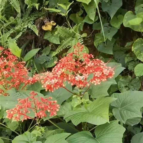 赪桐 Sweet)是唇形科、大青属灌木,高1-4米,叶片圆心形,顶端尖或渐尖,基部心形,…