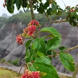 红萼龙吐珠马鞭草科大青属常绿木质藤本。叶对生,纸质,具柄,卵状椭圆形,全缘,先端渐尖,基部近圆形。…