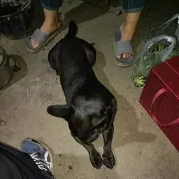 后腿发达,膝关节弯曲良好,既不内翻也不外展。跗关节近地面,彼此平行。所有狼爪都应去掉,若有狼爪出现应受惩罚。脚圆形紧凑,脚垫厚,呈黑色,趾暗黑色。