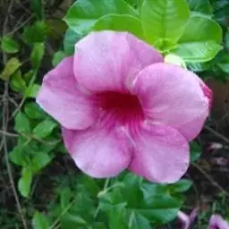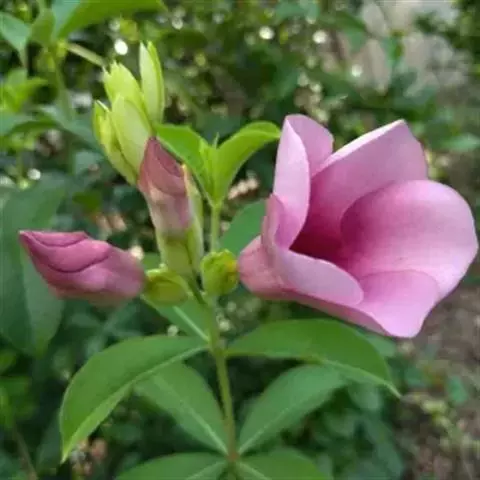 紫蝉花的茎呈蔓性,全株有白色体液。叶4枚轮生,长椭圆形或倒卵状披针形。春末至秋季开花,腋生,漏斗形,花冠5裂,暗桃红色或淡紫红色,柔美悦目,花期长达3-4个月。紫蝉花,优美木本花卉,喜温暖、湿润,适合于红壤,原产于巴西,属野生资源(个体),该品种优质、抗逆,主要用途是供观赏