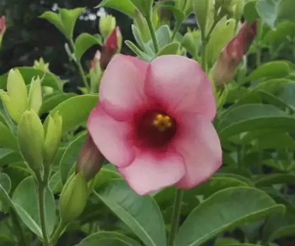 黄蝉属,夹竹桃科,约15种,分布于热带美洲,中国引入栽培的有黄蝉A. neriifolia Hoo…