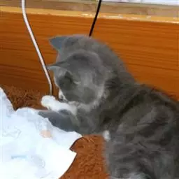也有为数不少的猫咪对纤维有癖好,大多是过早离乳造成的,所以线缝衣线、毛线、毛衣这类的纤维纺织品也尽量离猫远一点,线状异物造成的后果可是更严重的肠胃切割伤,不可不慎!