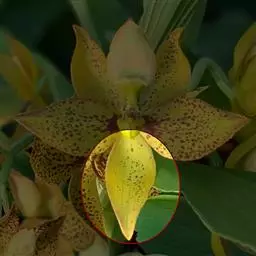 花单生或2-8朵排成总状花序;苞片叶状,长4-7.5厘米,宽3-7毫米;花梗长4-8厘米;花下垂,橙黄色,向基部约2/3有紫黑色斑点外外轮花被片长5-6厘米,宽1.2-1.4厘米;内轮花被片比外轮花被片稍宽,蜜腺两边有乳头状突起,在其外面的两边有少数流苏状的乳突、花丝长4-5.5厘米,无毛,花药长1.4-1.6厘米,花粉深桔红色;子房圆柱形,长1-1.2厘米,宽2-3毫米;花柱长为子房的2倍以上,柱头膨大,3浅裂。