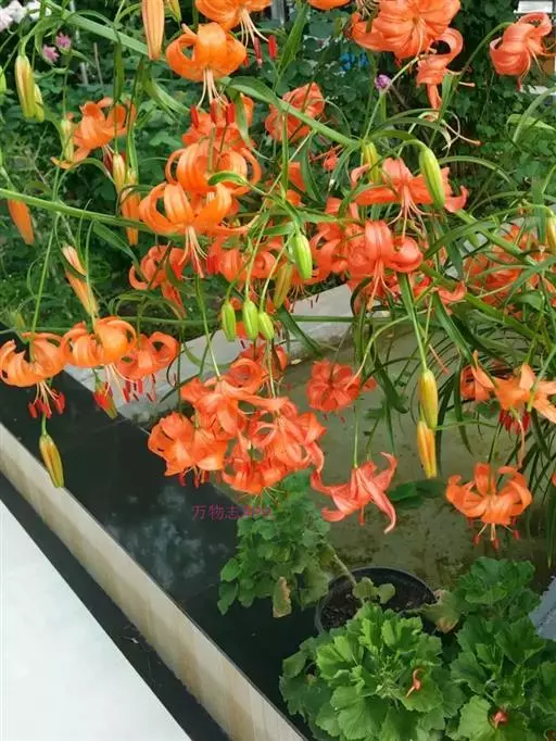 开花百合球生长的前期主要消耗自身鳞片中贮存的营养,因此定植前不需加过多底肥,定植一个月以后,可视土地肥力追施一些肥料。百合对钾元素的需求量很大,可按N- P2O5-K2O=14:7:21的比例配制复混肥料。按每亩每次10公斤追施,每10-15天一次,直至采花前3周。同时也应注意微量元素的补充,如铁、硼、锌等。