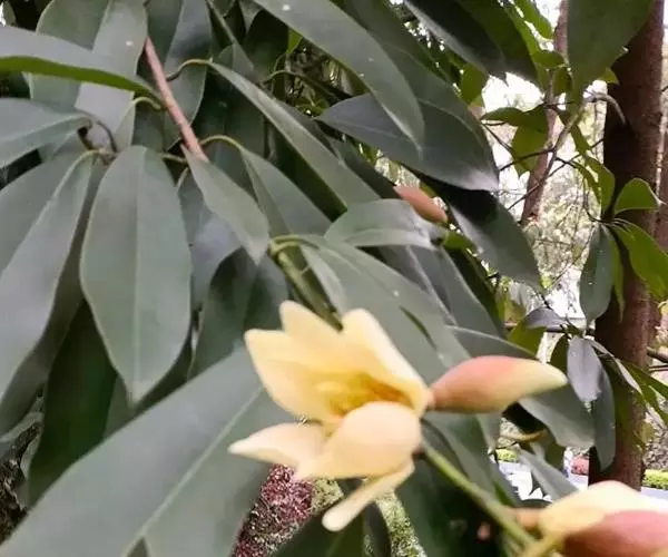 峨嵋含笑(学名:Michelia wilsonii Finet et Gagn. )是木兰科,含笑属小乔木,高可达8米。芽圆柱形或狭卵形,嫩枝被淡黄色绒毛,老枝无毛,叶革质,叶片长圆形或卵状长圆形,先端渐尖或急尖,基部宽楔形或近圆钝,托叶与叶柄离生,无托叶痕。花梗密被淡黄色长绒毛;花黄色,花被片长圆形或倒卵状长圆形,雌蕊群圆柱形,雌蕊群心皮卵圆形,花柱褐色。聚合果圆柱形,蓇葖长圆体形,3月开花,11月结果。