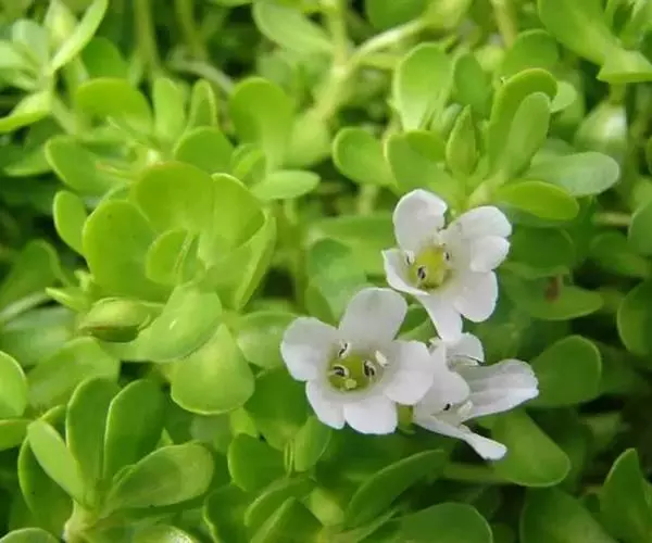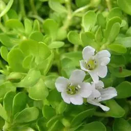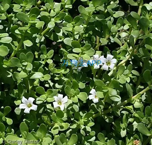 假马齿苋(学名:Bacopa monnieri (L.) Wettst.)斯玄参科匍匐草本植物。匍匐草本,节上生根,多少肉质,无毛,体态极象马齿苋。叶无柄,矩圆状倒披针形,长8-20毫米,宽3-6毫米,顶端圆钝,极少有齿。花单生叶腋,花梗长0.5-3.5厘米,萼下有一对条形小苞片。蒴果长卵状,顶端急尖,包在宿存的花萼内,4爿裂。种子椭圆状,一端平截,黄棕色,表面具纵条棱。花期5-10月。