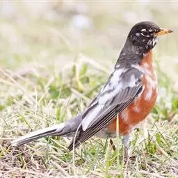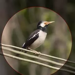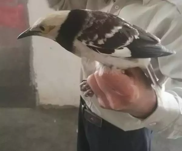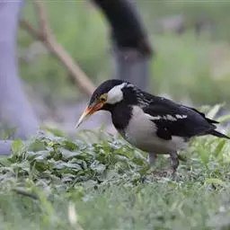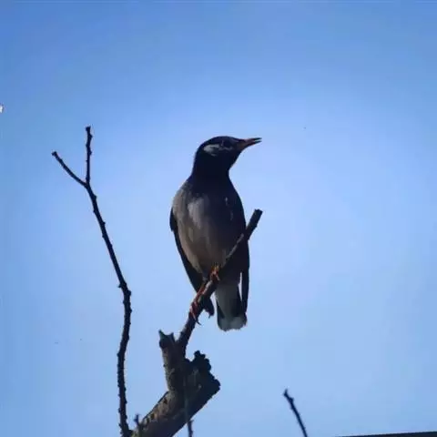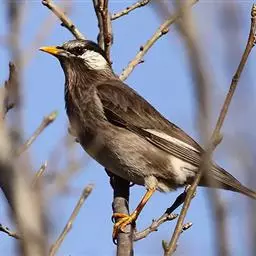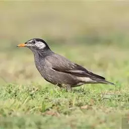 灰椋鸟俗称高梁头,管莲子。为中国常见的候鸟。主要特点是头顶和颈部黑色,前额和头侧白而杂以黑纹,体背面灰褐色,腰及腹部为白色;尾羽黑色,先端具白斑;嘴、脚为橙红色。迁徙时,常成群栖于树上,或旋翔于空中,飞行疾速。其体灰褐色,头上黑,两颊白,野外较易鉴别。