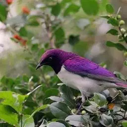 在飞行或栖息时喋喋不休,经常大群地聚集在一起。分布广泛的紫翅椋鸟捕食大量的昆虫,但也吃谷物和小果实,与其他鸣禽剧烈地争夺食物。自从1890年引进北美(纽约中央公园)以来,此鸟已成群地增加,在城效和市区普遍地被视为害鸟。繁殖期间集大群营巢,最多可达千只。鸟群常飞得很低,远看宛如一大片浮云。而在啄食地上的蝗虫及卵时,鸟群好像滚滚的波涛向前汹涌。当蝗虫迁飞时,它们腾空而起,在空中进行捕捉。