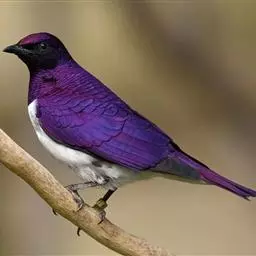 紫翅椋鸟为中国西北地区常见的候鸟。它的主要特点是头、喉及前颈部呈辉亮的铜绿色;背、肩、腰及尾上复羽为紫铜色,而且淡黄白色羽端,略似白斑;腹部为沾绿色的铜黑色,翅黑褐色,缀以褐色宽边。夏羽和冬羽稍有变化。野外观察,通体黑色,闪有紫铜色和暗绿色的金属光泽。