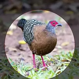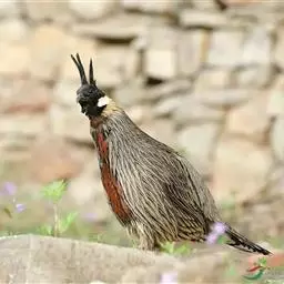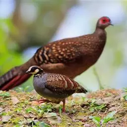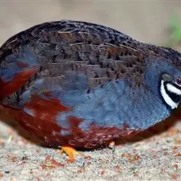 褐胸山鹧鸪:雄鸟体长22厘米,体重310克;雌鸟体长23厘米,体重220-275克。前额皮黄白色,…