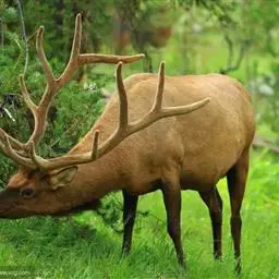 驼鹿(英文名称:moose):是世界上最大的鹿科动物,驼鹿属下共有2个物种8个亚种。驼鹿的名称取意于其肩高于臀,与骆驼相似。它又称堪达罕(满语)、犴达罕(满语)、犴,驼鹿在北美洲称为“moose”(源于东阿布纳基语的“moz”),而在欧洲称为“elk” (“elk”在北美洲被用来称呼加拿大马鹿)。以雄性的掌形鹿角为特征。驼鹿为典型的亚寒带针叶林食草动物,单独或小群生活,多在早晚活动。分布于欧亚大陆的北部和北美洲的北部。不同亚种的毛色有所不同。( 2005年由生物学爱威尔逊和里德认可驼鹿分为欧亚驼鹿和北美驼鹿为不同的独立的物种。)