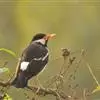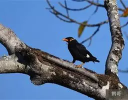 金冠树八哥为椋鸟科树八哥属的鸟类。体长约23厘米,闪辉黑色。特征为具翼斑及颏黄色,脸颊裸露皮肤粉黄色。…